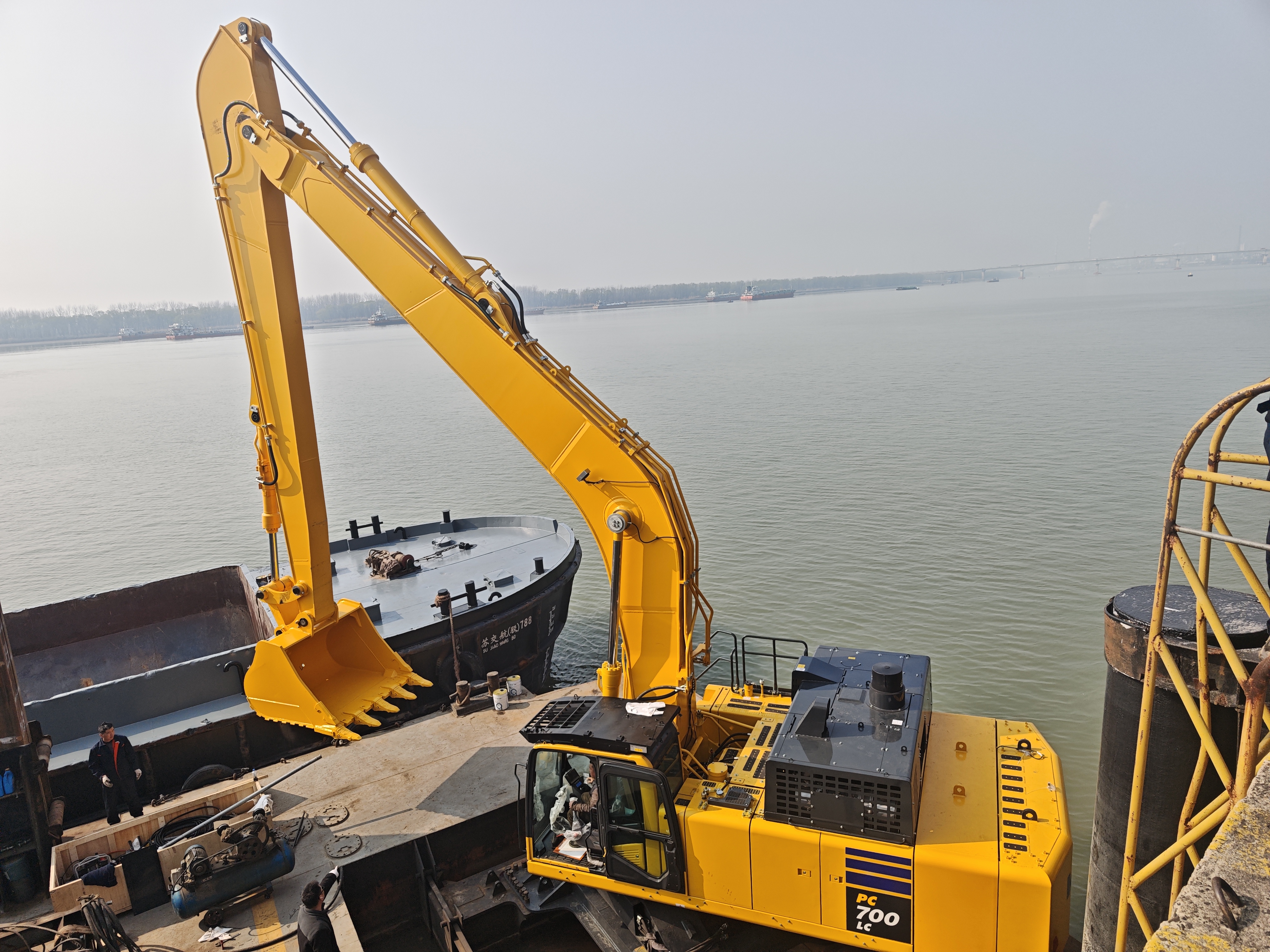 16米物料臂,配重改裝、平臺延長、0.6m3橘瓣抓斗、自取電系統,集中潤滑系統改造